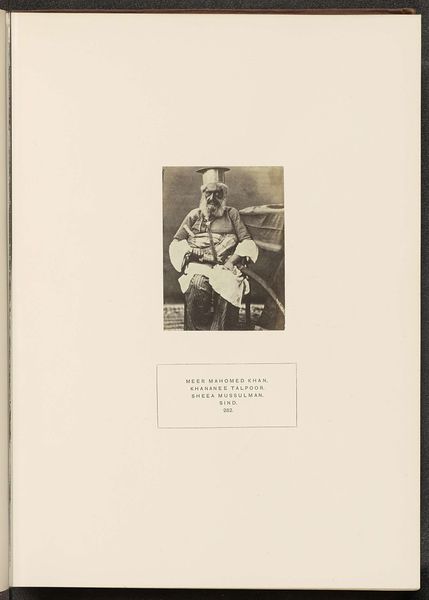Curator: This albumen print, dating from before 1874, captures a fascinating group portrait by Eugene Clutterbuck Impey. Titled "Portret van vier onbekende mannen van de Meena-stam met wapens," it offers a glimpse into a specific community at a particular moment. Editor: Immediately, I’m struck by the way the men present themselves. There’s a directness in their gaze, but also a vulnerability—amplified by the softness of the photographic medium. They want to appear strong and fearsome, with their weaponry, but there is some uncertainty there. Curator: Indeed. The photograph is itself a material object imbued with cultural and historical weight. Albumen prints involved a complex chemical process, using egg whites to bind the photographic chemicals to the paper. This laborious process was part of the colonial project of documenting and classifying other cultures, essentially a process of appropriation. The very act of Impey taking this photograph is worth examining: who benefited, who controlled the means of representation? Editor: The weapons are compelling. Each spear or stick looks carefully hewn from what’s naturally available. I also note how only three men are visible—do you think the title may be in error? Maybe one figure remains intentionally obscure? This use of the spear as an overt symbol is interesting as this points to defense but also points to tradition and their ancestral lineage. Curator: That's a good point about the men and weapon, which prompts me to think more about how Impey controlled that representation, potentially arranging these props as if this was stagecraft to promote that very point of view of exotic indigeneity to an outside audience. Editor: Despite that potential staging, though, those faces hold such presence, such a depth of knowing. The expressions they hold and reveal transcend that potential Western gaze, or appropriation of visual knowledge that the British photographer may be trying to create for those at home who see this. Curator: Ultimately, by grappling with the means by which the image was constructed and disseminated, the viewer is in a much stronger position to look and ask questions that delve into colonialism and indigeneity, rather than merely be consumers of an appealing portrait of unknown tribal men in what was then called Rajputana. Editor: I agree. The picture now has so much to tell us about both who's in front of and behind the camera!