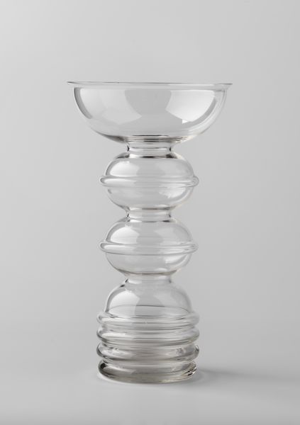 Editor: Here we have an exquisite glass goblet, crafted around the late 16th century by an anonymous artist. I'm struck by the way the delicate striations climb the undulating form. What aspects of this piece capture your attention? Curator: The pronounced emphasis on pure form is what truly fascinates me. Consider the way the artist manipulates the glass: the repeated curves create a complex rhythm, a visual syntax that moves the eye upward. Editor: So you're saying the form is more important than the function? Curator: Precisely. The functional aspect of a goblet is secondary. Here, the medium of glass is exploited to its fullest potential. Look closely at the filigree patterns. Note how they accentuate the spiraling shape, rather than merely decorating the surface. Are these patterns purely ornamental, or do you perceive a structural logic within them? Editor: Now that you point it out, the lines really emphasize the vessel's curvature and add complexity, transforming it into something beyond mere functionality. It seems like the interplay between those fine lines and the vessel shape create interesting optical illusions, wouldn’t you say? Curator: Indeed, these minute shifts and nuances add to the dynamism. The goblet is a triumph of aesthetic ingenuity. Editor: I see what you mean! Examining its structure unlocks a new perspective. I won't look at decorative art the same way again.
