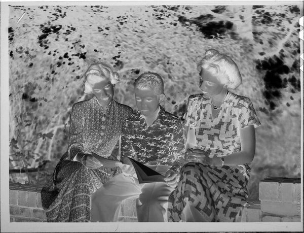 Editor: This is an untitled photograph by Jack Gould, showing three men in aprons and hats singing into a microphone. The image is striking, but I'm unsure how to interpret the aprons within this performance. What do you see in this piece? Curator: The aprons are key. They challenge the separation of labor and leisure. What kind of labor do they imply, and how does that context shift when placed on stage? Editor: I hadn't thought of it that way, it re-contextualizes the everyday. So, it's about class and performance? Curator: Precisely. Gould uses these familiar materials to make a point about social roles. Editor: That's so insightful, now I see the aprons as a very conscious decision by the artist. Curator: Focusing on the materials really opens up a whole new layer to understanding the work, doesn't it?