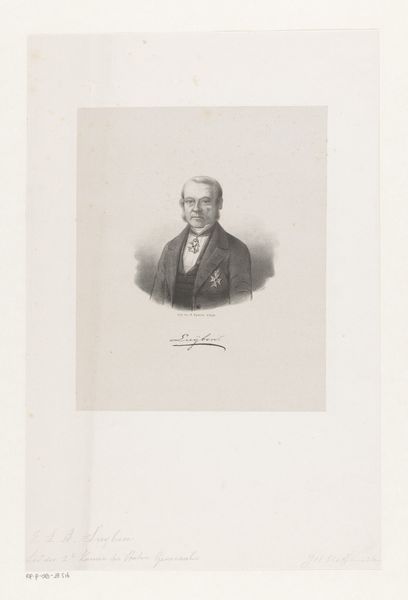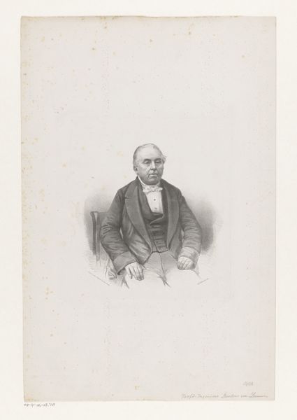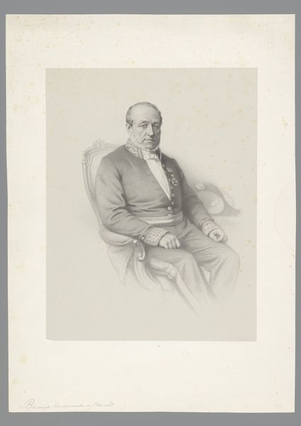 Editor: So this is "Portret van een onbekende man," or "Portrait of an Unknown Man," created sometime between 1835 and 1883 by Joseph Franck. It's a pencil drawing, and there's something very delicate about the shading. How would you approach an interpretation of this work? Curator: From a materialist perspective, I'm drawn to the stark contrast between the detailed rendering of the sitter's attire and the suggestive, almost absent, background. Consider the price and labor tied to each pencil stroke and paper in this period. What was the social purpose this material process served, do you think? Editor: Perhaps to signal status? The fine detail implies a commission, something for the upper class... but also accessible because it’s 'just' a drawing. Curator: Precisely. Think about the social conventions governing portraiture then. The *act* of rendering someone's likeness became a tool. And what about the sitter's accoutrements of status -- his medals, spectacles and formal jacket, contrasted with the 'everyman' aspect of the drawing's technique? What tension does this material decision create? Editor: It makes it feel...less grandiose than an oil painting might, more immediate. It’s like he wanted to be remembered, but also to remain approachable. The medium flattens, or perhaps democratizes the depiction of power? Curator: Exactly! By focusing on the materiality, the pencil, the paper, and the techniques used, we can understand how artistic choices intersect with class, labor, and social aspiration. Editor: I see! It's not just *what* is depicted, but *how* it is depicted, and how that connects to the broader material culture of the time. Thank you. Curator: It's been my pleasure to examine how humble material like pencil on paper, can reveal vast insight into power dynamics.