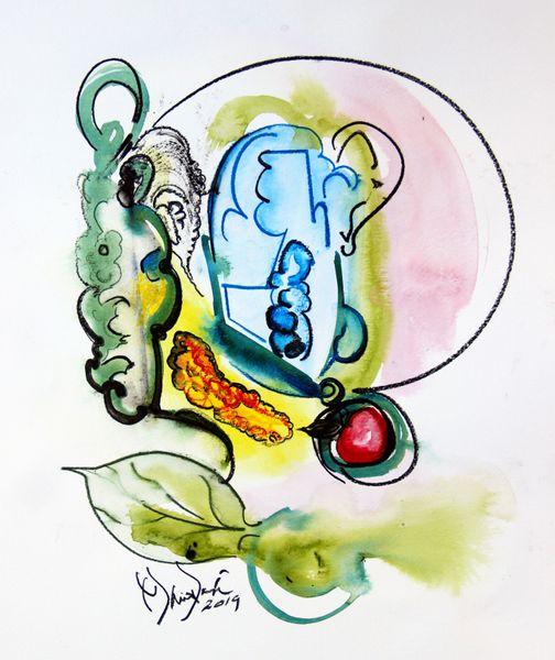 Curator: I find this untitled work by Luis Feito absolutely mesmerizing. While undated, its vibrant abstraction offers so much to consider. Editor: It's delicate, almost ephemeral. The watercolor and ink interplay create this sense of floating forms, tethered by the central red disc. Curator: Feito was a key figure in the Abstract Expressionist movement in Spain after the Civil War, often confronting the repressed atmosphere through abstraction. The apparent spontaneity hides, I believe, a structured critique. Editor: Perhaps, but the immediacy of the application strikes me first. Look at the layering; how the blues subtly stain the paper while the yellow seems to hover above it. Curator: That interplay you observe has significance when we examine the political constraints of the time. Abstraction became a coded language, a means to express dissent without direct confrontation. Geometric forms provided an escape from direct representation. Editor: I see your point. The contrast between the fluid lines and that solid red circle... it does create tension. It is like a controlled burst of energy struggling to break free. Curator: And one should also recall the art market dynamics. Embracing abstract styles allowed Spanish artists to align with international trends, seeking recognition beyond the dictatorship's borders, thus engaging critically. Editor: I'm more interested in the visual dialogue happening on the paper. How each colour defines and confines the others. The empty space is as important as the painted areas. Curator: Of course. And it reminds me of the importance of international art fairs and the political agendas that they often unwittingly promote by giving some artist prominence. Editor: What a complex, yet beautifully simple composition, open to countless interpretations. Curator: Yes. A great illustration of how art can act both as a mirror reflecting historical tension and also offering pathways to negotiate social constraints.