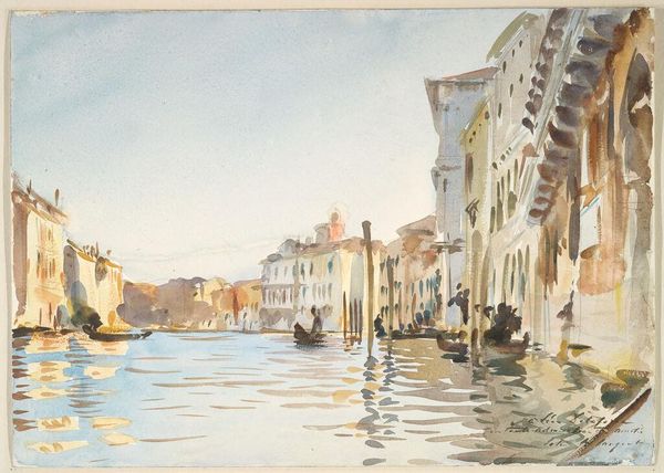 Editor: This is "Grand Canal" by Hercules Brabazon Brabazon, from the 19th century. It looks like it's done with watercolors and maybe some charcoal? I am struck by how blurry it is. It feels like a memory. What do you see in this piece? Curator: What strikes me is Brabazon's commitment to capturing Venice through the lens of its material realities. He's not just painting a pretty picture; he’s exploring the relationship between the city, its structures, and the means of representing it. Notice the washes of watercolor; how do they mimic the city's impermanence? Editor: That’s interesting! It does feel transient. So, you're saying the materials themselves are communicating something about Venice? Curator: Precisely! The hazy quality isn't just Impressionistic style, but also an echo of Venice's own vulnerability – the buildings slowly succumbing to the water. The rapid strokes speak to the fleeting nature of experience within the city's changing economic and political landscape. It makes me think, who had access to these materials, and what stories do their origins tell? Editor: That’s a side I hadn’t considered. I was focused on the image, not necessarily the labor and resources behind it. Is he also maybe questioning what art materials are valid? Watercolor wasn't always considered serious, right? Curator: Exactly. Brabazon elevates a medium often deemed “lesser,” blurring the lines between high art and craft, and questioning those power structures. It forces us to think about who dictates taste and value within the art market and society as a whole. Editor: I see what you mean! It all comes back to materials and who controls them. That completely changes my perception of the artwork. Curator: Glad to share that perspective! Analyzing art through a material lens reveals hidden layers of meaning and power dynamics, something always worth remembering.