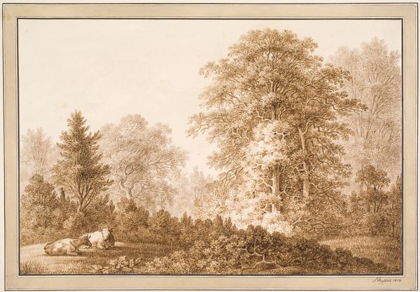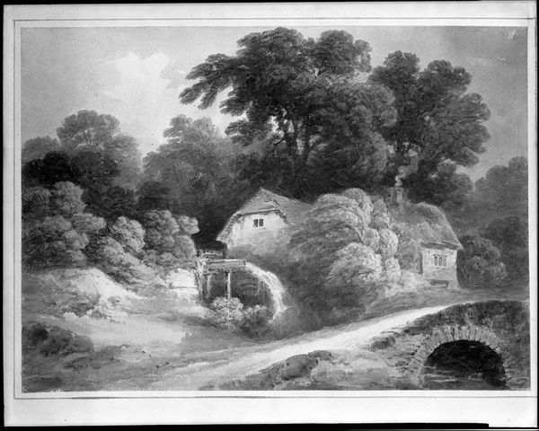 Editor: This is Henry Hitchings' "Landscape with a Road through a Forest, Stow, Massachusetts." It’s a beautiful, small drawing. It makes me feel like I am on a journey. What can you tell me about it? Curator: This work speaks to the 19th-century American ideal of manifest destiny, the belief that westward expansion was both justified and inevitable. But consider the solitary figure on the road – are they a pioneer or a victim of displacement? Editor: That’s a really interesting point. The figure almost seems dwarfed by the landscape. Curator: Exactly. The romanticized view of nature obscures the social and political realities of the time. How does this lens change your understanding of the work? Editor: It definitely makes me think about the cost of progress and who really benefited from it. Thanks for sharing your insight. Curator: It's crucial to analyze art within its complex historical context. I'm glad we could have this discussion.