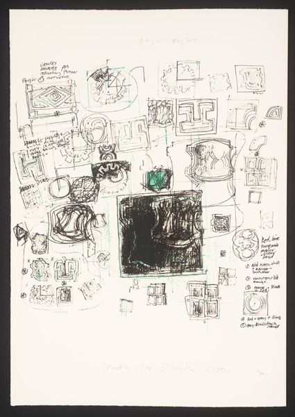 Editor: This drawing by Gordon House features maze-like designs using pen and ink. The patterns are very geometric. It reminds me a bit of architectural plans. What do you make of this work? Curator: Looking at the composition, I see a dialogue between order and chaos. The geometric forms suggest a desire for structure, but the hand-drawn nature introduces an element of human imperfection. How do you see this relating to broader themes of control and liberation, especially considering the sociopolitical contexts of the late 20th century? Editor: That’s interesting. I didn't consider the socio-political angle, but now I see a tension between the rigidity of the maze and the freedom of the hand-drawn lines. Curator: Indeed, it prompts us to think about how artists use form to negotiate complex ideas about freedom, constraint, and the search for meaning within established systems.