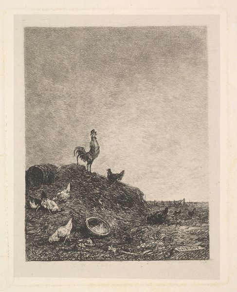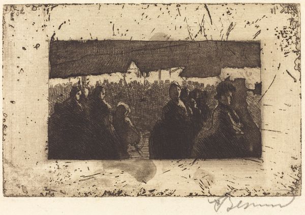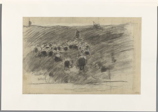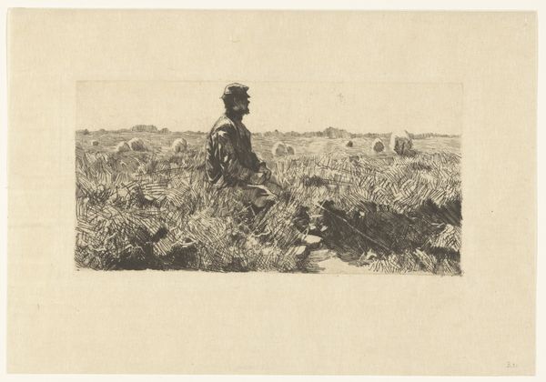 Anton Mauve created this work, Herder met kudde schapen, in the 19th century using etching. Notice how Mauve masterfully uses varying densities of etched lines to create depth and texture. The composition is divided horizontally, with the lower half densely packed with sheep and vegetation and the upper half fading into a hazy horizon. The limited tonal range focuses our attention on the structural elements, the play of light and shadow, and the way forms emerge from and dissolve into the background. Mauve isn’t just depicting a scene, he’s exploring the very essence of form and representation. The shepherd and sheep are not merely figures in a landscape, but elements in a broader visual field. Consider how Mauve uses the etching technique to destabilize the traditional landscape genre by blurring the boundaries between the figures and the ground. This work invites us to look beyond the pastoral subject matter and see how the artist uses the medium to create a dynamic interplay of form, space, and light.