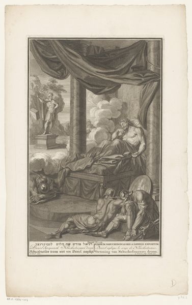 Louis Surugue created this print, "King Manasseh in Prison," during a period marked by religious and political tensions in Europe. The print depicts King Manasseh of Judah in a prison cell, reflecting on his sins, surrounded by other prisoners in various states of distress. The chains that bind the figures together here are both literal and metaphorical, representing not only physical captivity, but also the constraints of human behavior and societal expectations. The raw emotionality of the scene—the grief, despair, and introspection—invites us to confront our own vulnerabilities and moral struggles. Surugue uses the biblical narrative to explore themes of power, repentance, and divine forgiveness. Rather than glorifying royalty, Surugue humanizes Manasseh, portraying him in a moment of deep personal crisis. In this context, the print serves as a commentary on leadership, accountability, and the universal need for redemption. The artwork fosters an emotional connection, prompting questions about justice, mercy, and the possibility of change.