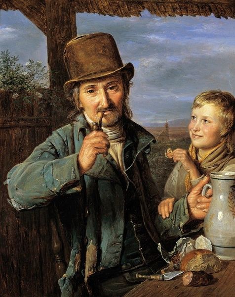 Curator: This is Frans Hals’s, *Fisher Boy*, painted around 1630. It's currently hanging here in the Royal Museum of Fine Arts Antwerp. What strikes you about this artwork? Editor: The first thing I notice is the light and the shadow – it makes the boy appear both vulnerable and mischievous. There is a rawness to the boy's expression, like he's been caught mid-thought, and the dark smudges across his face suggest a hardiness. Curator: Indeed. The seemingly simple portrayal of a young boy carries deeper connotations, particularly if we look at the societal hierarchies in 17th-century Netherlands. Children of working classes were rarely given such individualised, respectful attention in art. The painting normalizes him as a subject of equal attention, challenging, in a sense, classist notions of visual representation at the time. Editor: I agree, Hals certainly captured a democratization of the gaze through a mastery of painterly skills. Consider the loose brushwork. It doesn’t idolize him, but shows an intimate familiarity. How does it relate to how ordinary people wanted to see themselves at the time? Curator: In contrast to idealized Baroque portraiture, Hals captured an immediacy of experience, connecting his patrons to a broader Dutch reality. Hals elevated "ordinary" individuals, such as the fisher boy, and therefore these portrayals become incredibly charged and deeply relevant to our understanding of identity and labor, which in this painting seem very visibly articulated together. Editor: Yes, I suppose this genre-defining informality was embraced in response to an increasingly capitalist market that gave rise to different demands on the artists, so they created artwork in ways to signal they saw these patrons and everyday people. His use of light doesn't flatten the class dynamic, either. Curator: Ultimately, Hals’ work shows how portraits can simultaneously reproduce existing power structures but also create visual moments of inclusivity, providing nuanced representations of children who work for their families' economic survival. Editor: Looking closely, I now see *Fisher Boy* less as just an individual portrayal, but rather as an intentional representation, of Dutch identity itself at a fascinating time in its cultural history.