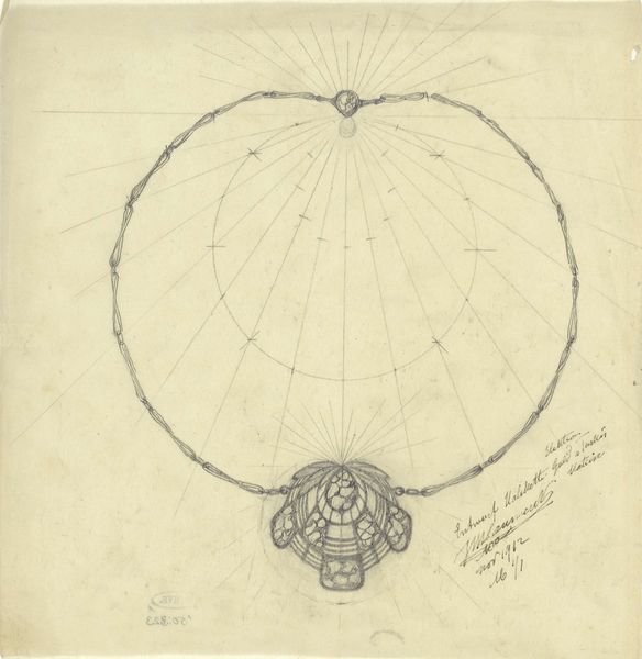 This necklace design was made by Mathieu Lauweriks, probably on paper, sometime in the early 20th century. It's not about a finished product, but about the bones of an idea and how it might be realised. The necklace is rendered in pencil with a fine, almost technical touch, as if engineering something precious. The radiating lines and perfect circles are like an aura around the piece. But what I like most is the pendant: a kind of heart-shaped form with concentric circles inside. It's as if the heart itself has layers, secrets, maybe even a hidden core. It’s all very delicate, drawn with a lightness of touch that reminds me of Paul Klee. You can feel the artist working through it, problem-solving, refining. And for me, that’s where the magic lies, in the making itself. Art is an ongoing conversation and Lauweriks reminds us that it can also be about process.