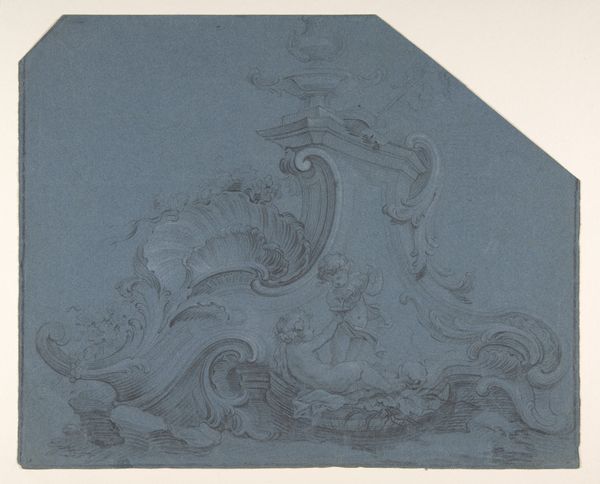 Curator: What a fascinating example of Italian Renaissance design! This is Battista Franco's "Design for the Decoration of a Lunette with a Large Central Cartouche," dating from about 1498 to 1561. Editor: It's captivating, in a ghostly way. The composition immediately strikes me as quite elaborate. It has an air of faded grandeur. What medium did Franco employ to bring forth the fine work we have before us? Curator: Franco created this design on paper using pen and brown ink with a brown wash, which allowed him to render these subtle variations of tone. Note the allegorical figures nestled among the swirling ornamentation. It offers insights into the workshops of Renaissance Italy and their output. Editor: The swirling patterns contribute significantly to its visual interest. Semiotically speaking, I wonder about that central cartouche; its emptiness seems charged with potential, waiting to be filled with meaning. Is it simply functional—a placeholder, so to speak? Curator: Exactly. Consider its place within a larger system. It offers an exercise in speculation. Was the intended space to contain a family crest, perhaps, or maybe it would commemorate some historical or allegorical moment, we can never know now? Editor: Speaking of process, I find myself wondering about the labor involved in this particular piece and the production that would have gone into the mural this design inspired, if it ever came to that point. How many hands were involved, and how did they interact? Curator: I see your focus on the wider labor situation of Renaissance workshop practices. This connects neatly to the economics and the structures that fostered artistic creation, highlighting how artistic outputs like Franco’s emerge from a complex system. Editor: The interplay between form and function, isn't it? Thinking about social and material dynamics—how consumption influenced artistic decisions—offers some valuable insight here, not just of his drawing capabilities but his position within the creative marketplace. Curator: Looking back, it is inspiring to see an Italian Renaissance artwork designed not as an end product, but a prototype for the mural arts! Editor: And how insightful to approach Franco’s historical context from the perspective of craft production that can tell us a bit more of the system in that day.