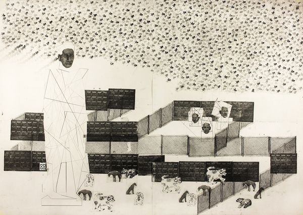 EtchingRoom1 created this untitled etching, sometime after 2016, that captures a vibrant fish market scene. The print presents a tableau of commerce and community life, offering a snapshot into contemporary social dynamics. The fish market emerges as a site where labor, consumption, and leisure intersect. There’s a clear emphasis on class distinctions, with some figures depicted in working attire while others, like the person with the suitcase, appear as consumers or tourists. The presence of cats adds a whimsical element, softening the commercial setting with a touch of everyday life. This artwork invites us to reflect on our relationship with labor, leisure, and the local economies that shape our daily experiences. The print provides a narrative about identity, suggesting a shared sense of belonging and continuity within the hustle and bustle.
