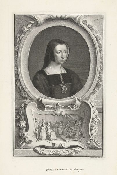 Editor: Here we have Gérard Edelinck’s “Portrait of Florence de Werguignoeul,” created in 1694. It’s an engraving, and what strikes me is the formality of the portrait, even within its oval frame. What can you tell me about the image? Curator: This print provides a window into the institutional and social structures of 17th-century Europe. Engravings like this, widely distributed, solidified the Church's image and its leaders like Florence, who was an abbess. How does the inscription at the bottom, and its reference to "promotion" within the "Reforme," impact your interpretation? Editor: Well, knowing she was promoting reform does add a layer of understanding. It moves it beyond just being a straightforward depiction of a religious figure; it positions her within a specific, possibly contentious, movement. Curator: Precisely. Consider, too, the power dynamics inherent in portraiture. The choice of presenting Florence with a crucifix signifies not only her piety but also the authority invested in religious iconography. How does this image, reproduced for a broad audience, reinforce that authority? Editor: It almost acts as propaganda, showcasing her dedication and therefore legitimizing the reform movement she’s part of. The act of replication, by being more accessible to a wider range of audience members, makes it more potent than just one painting. Curator: Exactly. This points to how art participates in shaping public perception. By examining the context—the reform, the printing press, and the abbess's role—we reveal the engraving's broader cultural function. Editor: That makes me think about the relationship between art and power—how an image can solidify ideologies. I didn’t realize a simple engraving could have such a complex story. Curator: It demonstrates the profound interplay of artistic representation, historical context, and social power. Every artistic choice contributes to a narrative that reinforces existing structures.