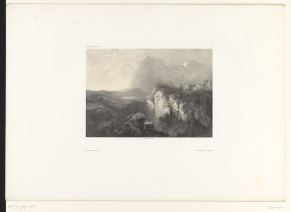 Curator: Gudin's "Huis aan de kust bij maanlicht," or "House by the sea by moonlight" from 1824. This engraving, done with ink on paper, strikes me as incredibly somber. What’s your initial read? Editor: There is a romantic desolation, certainly, but I also feel the power of nature reflected. I can almost feel the dampness in the air and smell the brine. I immediately think about access and protection. Who inhabits such a precarious home, and what historical circumstances position them there by the sea? Curator: That proximity to the elements is so potent, especially considering this is an engraving, which necessitates a very different kind of labor than painting. You know, there’s such a laborious craft involved. This isn't a spontaneous expression, but a deliberate carving, printing and transferring an image. How might that deliberate creation impact our viewing of it? Editor: The printmaking process emphasizes how landscapes such as these, during Romanticism, served as reflections of internal states and political turmoil, even sites of resistance. Consider the implications of widely distributed printed images democratizing artistic experience. The question is, who has access to these representations, and what narratives do they perpetuate or challenge? Curator: That ties into the idea of access in general. Printmaking opened up a visual landscape to a broader audience, and that meant considering materials in different ways. Cheaper, reproducible materials create accessibility, yet we are also concerned about the original, the hand of the artist, right? Editor: Yes, and it speaks to broader power structures. How is land and resources allocated? Who has the privilege to dwell securely away from the encroaching sea versus being forced to build their homes on its edge? The solitary figure adds to this reading, dwarfed by the ocean. Curator: Gudin presents a world of stark beauty made through a highly structured medium. Considering the labor and materiality involved forces us to question our expectations for what constitutes "art" and for whom it is created. Editor: Ultimately, the print acts as a conversation starter about humanity’s place within an often unforgiving world, especially pertinent to considerations about inequality. A testament to how art serves not only as aesthetic expression but as an active player within a broader social landscape.
