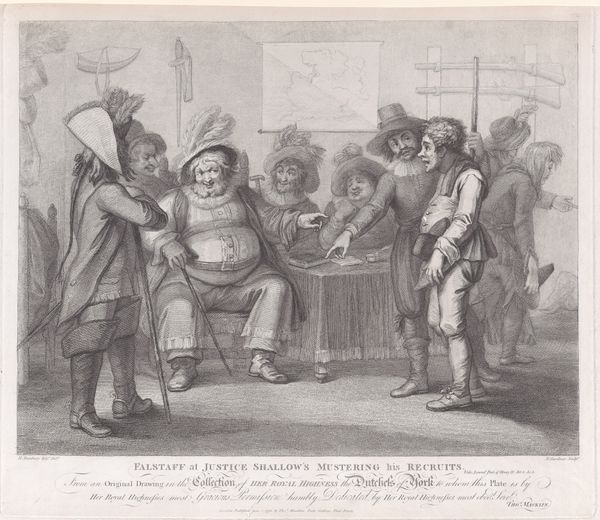 Curator: This print by George Cruikshank is titled "Probable Effects of Over Female Emigration, or Importing the Fair Sex from the Savage Islands in Consequence of Exporting all our own to Australia". Editor: The mood is... uneasy. The composition throws these two very distinct groups into sharp contrast. What's going on here? Curator: It's a satirical commentary, likely from the mid-19th century, addressing anxieties about British emigration to Australia and its potential impact on the marriage market back home. Consider the production of prints such as this one, and how this caricature plays into the social anxieties of the time. Editor: So, the “fair sex” being “imported” is a commentary on labor, and maybe, the exploitation of indigenous populations, right? Curator: Precisely. Think about the social context: a British audience would have received this with a certain understanding, or perhaps, unease, regarding imperial ambitions and the commodification of people. Editor: Right. Cruikshank really forces us to confront the political implications of something as personal as courtship and marriage. Curator: Indeed. A striking visual representation of complex issues.
