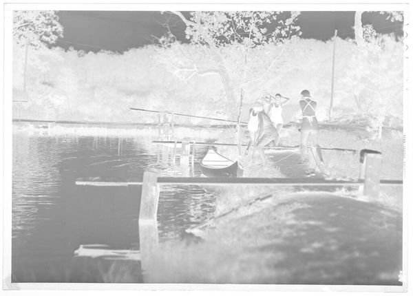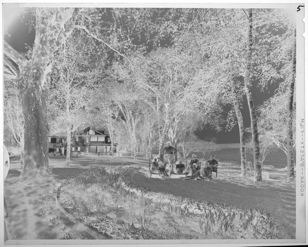 Curator: This is an untitled photograph by Hamblin Studio, depicting cars parked at Tuscanora Beach. Editor: It has this eerie, dreamlike quality, almost ghostly with the reversed tones, yet it also feels incredibly familiar and nostalgic. Curator: Indeed. It captures a leisure scene, likely from the early 20th century, reflecting the growing accessibility of car ownership and its impact on social gatherings and summer pastimes. Editor: I see more than just cars; I see a class divide materializing. Car ownership meant something very different then; access wasn't equal. Curator: Absolutely. This image inadvertently reflects the changing social landscape of the time. Editor: It's a powerful reminder of the narratives embedded in even the most seemingly simple snapshots. Curator: A lens into the past, for sure.