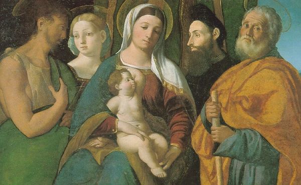Correggio painted "The Holy Family with Saint Jerome" in oil on wood panel sometime in the early 16th century, during the Italian High Renaissance. Here we see the conventional religious image of the Madonna and Child, but Correggio has included Saint Jerome as a key figure. Saint Jerome had translated the Bible into Latin in the 4th Century, and in this painting he is shown offering his work to the infant Jesus, in the presence of Mary and Joseph. The painting was probably commissioned by a religious order, perhaps for use as an altarpiece. During the Renaissance, religious orders were powerful institutions that controlled not only churches and monasteries, but also schools and hospitals. They commissioned much of the art of this period, making it a powerful tool for the church. Studying the patronage of religious orders in Renaissance Italy can tell us much about the role of images in the cultural life of the time.