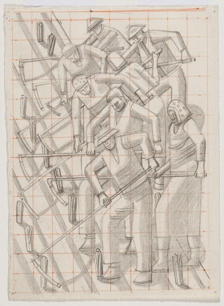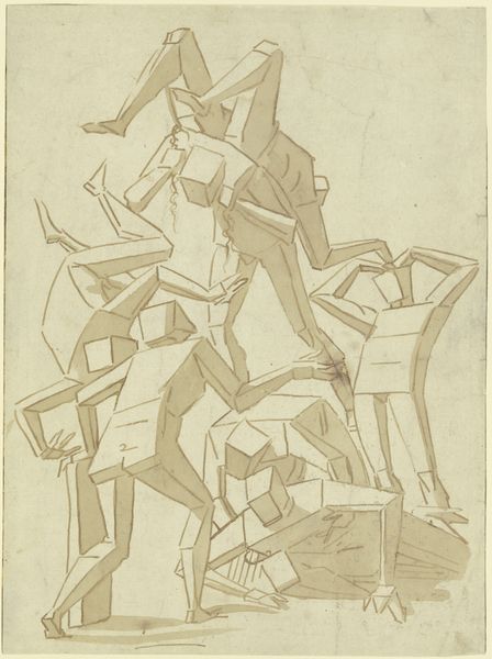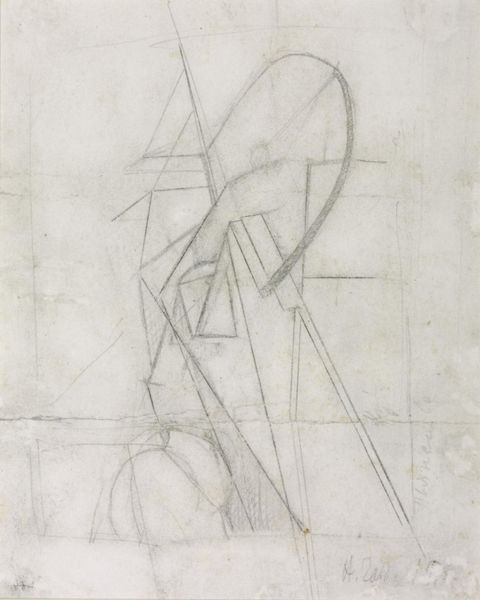 Editor: So, this is Roger de La Fresnaye's "Still Life," created around 1920. It's a pencil drawing on paper, and what strikes me immediately is how these sharp, geometric shapes still suggest such domestic tranquility. What do you see in this piece? Curator: It's fascinating how La Fresnaye uses Cubist language, known for fragmenting reality, to depict the bourgeois interior. Consider the socio-political context. Post World War I, the established order was in question. Cubism, with its rejection of traditional perspective, became a visual tool to challenge that order. Editor: So, it's not just about breaking down forms, but also about questioning social structures? Curator: Precisely. Look at the objects - the bottle, glasses, even the chair. These are symbols of middle-class life, but they're presented in a fractured way. The stability of the scene is disrupted by these angular shapes, subtly challenging the viewers comfort. What message do you think he's sending by depicting the bourgeoise with Cubism? Editor: Perhaps he’s hinting at the underlying instability of that lifestyle, even if it appears calm on the surface. The world was shifting, and maybe the bourgeoise needed shaking up a little, or opening to modern ideas? Curator: Exactly. It reflects the anxieties and uncertainties of a rapidly changing world. Editor: That’s really interesting; I wouldn’t have thought to connect Cubism to post-war anxieties in that way. I was mostly appreciating the rendering of light. Curator: And there is pleasure to be taken from that aspect, but now we see the historical context too. This piece makes me reconsider the role of art to confront societal norms. Editor: Definitely food for thought. It has really changed how I view it too.