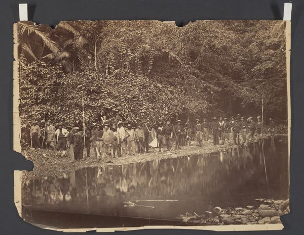 This photograph, taken by J. Ebbenhorst & Zoon, captures a family assembled by the Pekingkom pond in Baarn. At its heart, this scene evokes a sense of familial connection, a motif that echoes through time. Consider the positioning of the family members—a cluster by the water, a composition resonant with historical depictions of gatherings near bodies of water. From ancient rituals by sacred rivers to Renaissance paintings of nymphs and muses at springs, water has long been a symbol of life, renewal, and purification. The Pekingkom, named perhaps with a touch of orientalist fancy, invites us to reflect on how cultures adopt and adapt symbols. It is through such adaptations that symbols remain vibrant and relevant. Here, the water reflects not only the trees and sky but also the enduring human need for connection and reflection. In essence, we witness the cyclical return of timeless motifs.