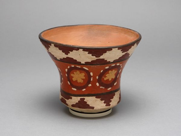 Editor: Here we have a ceramic vase from the Staffordshire Potteries, dating back to around 1810. The swirling patterns and warm color palette give it a vibrant, almost psychedelic feel, despite its age. How do you interpret the social implications behind decorative objects like this vase? Curator: That "psychedelic feel," as you put it, hints at a fascinating story. Staffordshire Potteries emerged during a period of immense social change. Mass production of decorative objects made luxury accessible to a burgeoning middle class, thereby disrupting existing socio-economic power dynamics. But let's consider the labor conditions required for that mass production. Who were the potters? Editor: I hadn’t thought about the social dynamics embedded in a vase. So you're suggesting that something as seemingly innocuous as a decorative object is actually tied up in complex narratives of class, labor, and accessibility? Curator: Precisely. Think of this vase as a material witness to the rise of consumer culture. Who got to participate and at what cost? Moreover, these patterns could also signal global exchange – were the colorants sourced locally, or did they come from colonized lands? Every object whispers histories of power. What stories can we piece together about empire just from looking closely at the materials themselves? Editor: So, this vase is more than just pretty colours. It embodies social questions around colonialism, economy and labor. Thank you for making me think twice before seeing merely "decorative art." Curator: And thank you for bringing fresh eyes to this conversation. Recognizing these interconnected histories transforms how we engage with art.