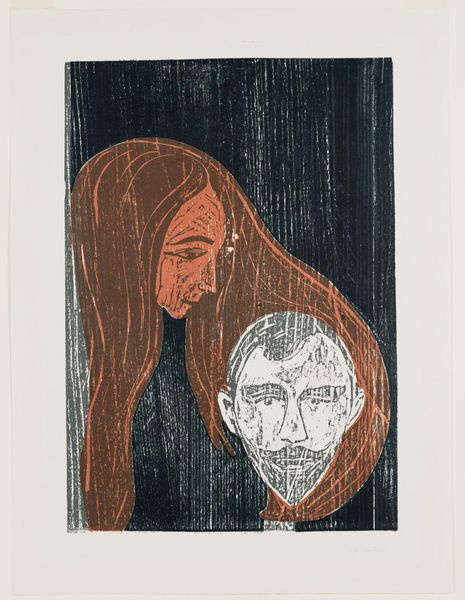 Edvard Munch made this print, "Kiss on the Hair," using a woodblock to lay down these close, dark tones. It’s about intimacy, yes, but there is a bluntness, a rawness that grabs me first. Look at how Munch has gouged out lines—they are like the scratches in a relationship, the bits that aren't smooth. The grain of the wood is right there, not trying to hide. The kiss itself is almost swallowed by the hair, this big curtain of red-brown that seems to blend the two figures together. You can feel the pull of attraction, but also maybe the fear of losing yourself in someone else. It reminds me of Paula Modersohn-Becker, who also wasn't afraid to keep the grit in her work. Both these artists use a kind of visual honesty that’s way more interesting than perfection. Art isn’t about answers; it’s about feeling your way through the questions.
