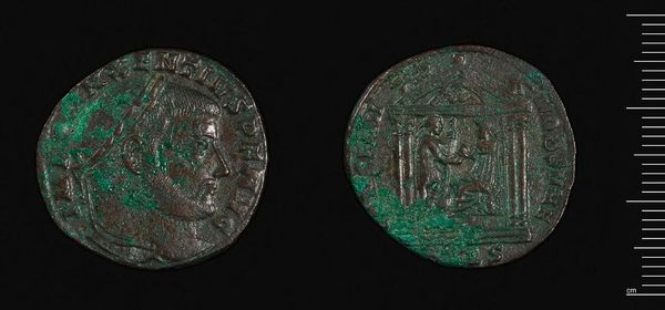 Curator: Here we have an intriguing coin, an AE2 of Magnentius, whose weight is a mere 4.55 grams. Editor: It’s so small, yet it feels monumental. The figure on the obverse has such a stern expression, almost melancholic. Curator: As an artifact, it really speaks to the socio-political landscape of its time. Each strike, each imperfection tells a story of labor, trade, and power. Consider the bronze itself—mined, smelted, die-struck... Editor: And consider Magnentius himself, rising to power in a time of crisis, only to meet a tragic end. The imagery—the emperor, the victory symbols—it’s all carefully crafted to project an image of strength and legitimacy. Curator: It's a raw, tangible connection to a distant past. Editor: A past that still resonates, reminding us how power is negotiated, represented, and ultimately, how fragile it can be.