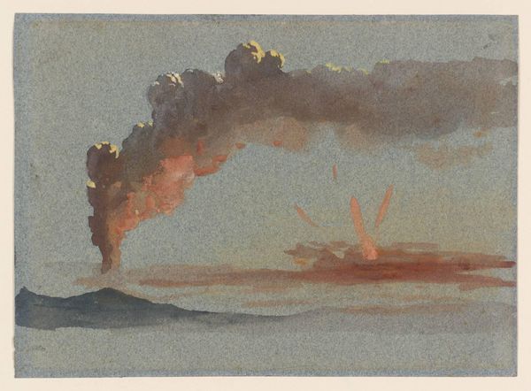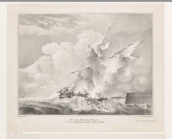 This etching, "Springen van de Haagse Kaper de Dappere Patriot," was created in 1781 by Reinier Vinkeles. The composition is dominated by a central explosion, framed by two ships amidst turbulent waters. Vinkeles employs a high contrast of light and shadow to amplify the drama of the naval conflict. The artist masterfully uses line and form to create an image of chaos and destruction. Sharp, radiating lines emanate from the explosion, fragmenting the scene into dynamic shards. The contrast between the detailed depiction of the ships and the abstract representation of the explosion introduces a tension, questioning the romanticization of naval power. The work destabilizes traditional representations of maritime glory, presenting instead a scene of destruction and disorder. Through its formal elements, the etching invites a re-evaluation of the narratives surrounding naval conflict.