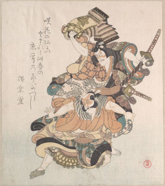 This Japanese screen, created by Kō Sūkoku, captures a raw moment of conflict. We see two figures locked in combat; the dominance and aggression that is palpable in their intertwined bodies is the central theme here. Consider the symbolism of conflict across cultures. In ancient Greece, the wrestling match embodied not just physical contest but also intellectual and moral strength, celebrated in sculpture and vase paintings. Here, the disrobing of armor—akin to stripping away dignity—reveals a deeper, psychological struggle for supremacy. This motif of struggle is not confined to the battlefield. Think of the biblical Jacob wrestling with the angel, a metaphor for inner turmoil and spiritual striving. These representations resonate with our own internal battles, tapping into a collective consciousness of struggle and transformation. The raw emotion captured in this image speaks to a universal human experience, one that transcends cultural boundaries and echoes through the ages. A powerful reminder of the timeless dance between aggression, vulnerability, and dominance.