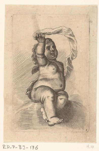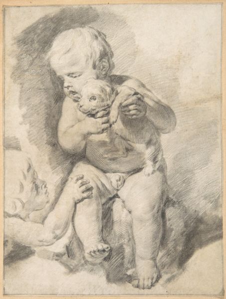 Editor: This charcoal drawing, “Putto,” by Hendrik Willem Schweickhardt, from around 1756 to 1797, has a somewhat classical feel. The soft lines and the cherubic figure create a dreamy, almost ethereal effect. How do you interpret this work? Curator: It is quite fascinating to consider the social context in which Schweickhardt made this drawing. He would have been working in an era increasingly dominated by debates about the purpose of art. Consider the materiality of the work itself. Charcoal is such a basic substance. Its accessibility invites questions about the democratization of art production. Editor: So, you're focusing on the medium and its implications? I hadn't really thought about charcoal that way. Curator: Exactly! The artist’s choice of charcoal pushes us to reflect on the process of making itself, and how such humble materials can create forms with clear links to artistic lineage and cultural value. Moreover, putti were popular decorative motifs, readily reproduced in various media. How does the drawing differ from or echo the expectations for putti at that time, do you think? Editor: That’s true; I automatically think of Renaissance paintings, but the choice of charcoal creates a completely different, almost less formal, impression. This isn’t some grand, commissioned piece. Curator: Precisely. And by understanding the conditions of its production –the charcoal itself, the culture of reproductive images, and the labour that went into making it– we gain a richer insight into art’s entanglement with daily life. It makes you reconsider boundaries between high art and the stuff around it. Editor: I see what you mean. Thinking about the material really changes how I understand the artwork and where it fits in society. Curator: Absolutely, and that's the power of considering art from a materialist perspective.