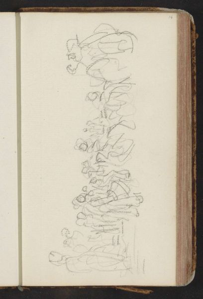 Curator: This delicate drawing is titled "Band met een floraal motief," or "Band with a Floral Motif," by Gerrit Willem Dijsselhof, dating from around 1901. It’s currently housed here at the Rijksmuseum. Editor: It strikes me as both elegant and somewhat hesitant. There's a delicacy in the line work, yet the composition feels unfinished, almost like a fleeting thought captured on paper. Curator: Exactly. Dijsselhof was deeply involved in the Art Nouveau movement, and this sketch embodies the period's fascination with natural forms adapted into stylized designs. These motifs were often deployed across multiple mediums, including textiles and graphic arts. How does the symbolism resonate with you? Editor: Well, the stylized flora suggests a broader conversation about growth and transformation. The repeated forms create a rhythm, almost like a visual mantra. Are those abstract interpretations of vines or perhaps idealized, deconstructed lotus flowers? There’s an undeniable visual connection to ornamentation from other eras, a continuous thread. Curator: That's astute. You see the cultural echo. It's vital to recognize that Art Nouveau emerged during a period of intense industrialization and social upheaval. The return to organic motifs can be interpreted as a form of resistance against the mechanization of life, and sometimes as a rejection of certain aesthetic conventions deeply rooted in academic structures. Editor: So, in that context, the drawing acts almost as a yearning for a less-rigid societal order. Curator: Precisely. Dijsselhof uses what at first appears like decorative elements to construct a kind of counter-narrative against rigid hierarchies. These images of intertwined leaves carry layers of symbolism. Editor: It also draws our attention to a constant element throughout human creative history. Even today artists draw inspiration from art created centuries ago. It’s almost as if symbols communicate through the ages. Curator: In a sense they do, yes. Editor: Thank you for opening up such insights. I see this now as more than a sketch; it's a complex social response encoded in flowing lines and botanical allusions. Curator: My pleasure. Hopefully, it prompts further conversations on the intertwined nature of art, resistance, and cultural memory.
