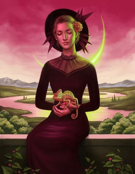 Curator: This alluring portrait is entitled "Rapunzel" by Fernanda Suarez, executed with acrylic paint. What's your initial take on this enchanting depiction? Editor: The immediate impression is one of soft power. There’s a sense of serene confidence radiating from her, underscored by the cascading golden braid which she clasps in her hand, framing her like a natural extension of herself. Curator: Indeed. Let's delve into how the piece reinvents a historical fairytale within contemporary social dialogues about autonomy and identity. It's compelling to note that rather than portraying Rapunzel as a damsel in distress awaiting rescue, she exudes a modern agency. How does the imagery convey this subtle shift in narrative? Editor: Observe the layering of symbolism—the sunburst backdrop is classic iconography for royalty, rebirth, enlightenment. Yet, she is in casual clothing, modern jewelry and makeup—not trapped, but a ruler and an explorer of her domain. Also, her hair is the color of that sunburst, so it represents all of the aforementioned characteristics from her perspective, something of hers. Curator: The braid, historically a symbol of confinement, now suggests continuity, strength, and a link to ancestral wisdom. It’s her superpower as opposed to a hindrance. Editor: Exactly. Hair as symbolic capital. Consider the fresh flowers woven throughout. These blossoms become an emblem of organic beauty, of liberty attained, and the integration of inner strength with outer beauty. Curator: So it's a reclaiming of the fairytale, filtered through a feminist lens. By decentering the traditional male gaze and romantic rescue, the artwork centers Rapunzel's self-discovery. She's the author of her own story. Editor: Precisely, she becomes a figure for those who rewrite old tropes and reimagine them to be empowering tools of visual self-expression and freedom. Curator: Considering these visual narratives within our modern dialogue, I believe "Rapunzel" truly embodies transformation, not just in the character, but in the archetype itself. Editor: I completely agree. It's a rich tapestry woven with updated cultural codes—one that sparks many insightful interpretations.