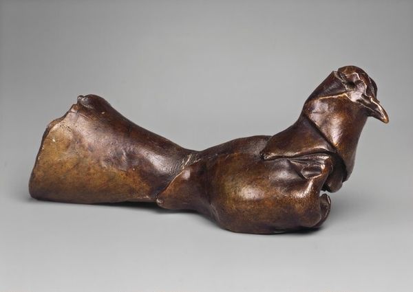 Curator: What a striking bronze sculpture! This is Anna Hyatt Huntington’s “Yawning Tiger,” created around 1917. Editor: It’s phenomenal. The tension between latent power and vulnerability is immediately palpable. The texture of the bronze seems to capture every ripple of muscle under that skin. I’m captivated. Curator: I see it similarly. Huntington was deeply engaged with Realism but she was more than just a copyist of observable reality. Her focus on musculature reveals her fascination with power, certainly. As a female sculptor working in a male-dominated field, might this tiger not represent a kind of suppressed, or barely contained, feminine strength in the early 20th century? Editor: Absolutely. The act of yawning is revealing too, the vulnerability of the throat contrasted with the power of the open jaw. Could it symbolize something culturally—a roar against convention perhaps, the shedding of old constraints? The symbolism is incredibly rich. Tigers throughout cultures, from East to West, represent raw power, but the yawn adds a layer of commentary. It’s not just a fearsome beast, but one caught in a moment of surrender to nature itself. Curator: Indeed. It transcends a simple depiction. During Huntington’s time, the Suffragette movement was gathering momentum. I'm struck by the deliberate act of opening oneself, especially in relation to vulnerability and the projection of one's voice against entrenched societal resistance. It seems profoundly pertinent to conversations surrounding the agency, power and strength of women's bodies. Editor: It does. The symbol echoes across history and cultures. We see the tiger repeatedly signifying authority, might, and even a sort of untamed aspect of the human spirit. Consider, for instance, its prominence in ancient Asian cultures, embodying both celestial power and earthly sovereignty. That resonance gives added meaning, here. Curator: Yes, and I see it connecting to our contemporary moment, when bodies are once again grounds for fierce contestation in social and political debates. Editor: Precisely, and it showcases how relevant older forms and symbols are to how we discuss contemporary subjects. Thinking about cultural memory— the tiger hasn't lost its symbolism for power and vitality, nor its cultural impact. Curator: It's inspiring to revisit an artwork like Huntington’s “Yawning Tiger” to rethink its connections across time and artistic creation. Editor: Definitely. Thank you. It has offered another lens on a compelling creature that has always been part of humanity's collective vision.
