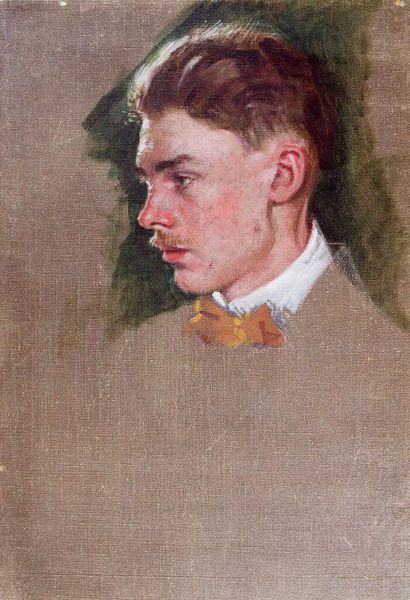 Editor: This is "Portrait of Jimmy" by Denman Waldo Ross. It’s an oil painting with visible brushstrokes, and Jimmy has a really intense gaze. What do you see in this piece? Curator: I see a fascinating study in power dynamics. The direct gaze, the formal attire...it suggests a certain level of societal expectation. But the somewhat unfinished quality also hints at vulnerability. Do you think Ross was perhaps commenting on the performance of masculinity? Editor: That's interesting, I hadn't thought of it that way. It definitely gives me more to consider. Thanks! Curator: Indeed. It’s a reminder that portraiture isn't just representation; it’s a negotiation of identity within a specific social framework.