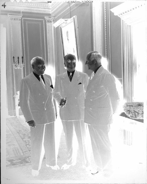 This photograph by the Associated Press captures President Soekarno in conversation with the American ambassador Cochran. The image is composed of paper and silver halides, and the processes involved in its making have imbued it with significant cultural and social information. The paper support gives the photograph its physical substance, while the silver halides are light-sensitive compounds that react to exposure, capturing the details of the scene. This meticulous method, where light is used to imprint an image onto a prepared surface, represents a shift in how we perceive and record reality. The black and white aesthetic speaks to the technology and visual language of the era, and the amount of work involved in its production is a complex combination of scientific knowledge, technical skill, and labor. The photograph freezes a moment in time, and the image becomes a political record of mid-20th century Indonesia. Considering the materials, making, and context of the photograph encourages us to appreciate the complex layers of meaning embedded within it, and challenges conventional distinctions between art, craft, and document.