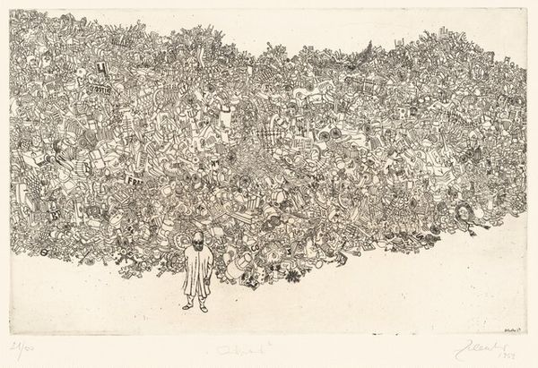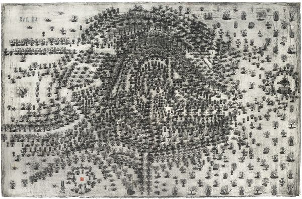Curator: Pavlo Makov's "A.I. Garden," created in 2017, is a fascinating pen and ink drawing that seems to be charting something...a topography perhaps. Editor: Yes, it has a deeply cartographic feel, almost like an obsessive rendering of an overgrown landscape. I find the heavy linework strangely compelling—it evokes a sense of both precision and chaos. What’s your immediate reaction? Curator: Oh, chaos absolutely! I feel delightfully lost just gazing at this hill—a wonderfully orchestrated muddle. Is it me or does anyone else perceive the title's ambiguity about who is growing what and for whom? Editor: Right? "A.I. Garden"— the very title throws open questions about control, organic growth versus simulated development, even ecological disaster or rebirth. This intersection is the core of my interest: nature mediated through tech, or maybe superseded? The lines themselves are interesting, are they roots or network cables? Curator: Perhaps that's the beauty; those rigid lines amidst all that organic 'sketchiness' forces one to pause. We might ask ourselves: can artificial intelligence, like a meticulous gardener, shape nature's boundless energy into something more...comprehensible? Or maybe more controllable. Editor: Definitely controllable, or even weaponized. If we accept this "garden" as a representation of controlled spaces – politically, ecologically – how are we implicated? The artist isn't simply showing us something aesthetic; it's asking what kind of "garden" are we cultivating ourselves? Curator: Gosh, that is such a rich interpretation. It takes on almost prophetic significance given the environmental and digital dilemmas of today. I look at the drawing and start questioning who's wielding the pen—or, algorithm in this case? Are we all just seedlings in some tech giant's controlled ecosystem? Editor: It really begs this question, doesn’t it? And maybe, the sketchiness is less imperfection and more a representation of the limits of even the most advanced control systems. There's a lovely push and pull at play... Curator: Yes, the more I linger, the less I see chaos and the more I admire its peculiar harmony. Maybe the artificial and the organic aren't opposites at all, but just different facets of the same blooming conundrum. Thank you for digging a bit deeper!