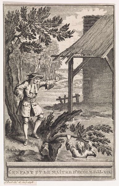 This print, 'Women Fishing a Woman from a Ditch,' was made by Daniël Veelwaard around the late 18th century, employing etching and engraving techniques. The process begins with a metal plate, likely copper, meticulously coated with a waxy, acid-resistant layer. Veelwaard would then scratch his design into this layer, exposing the metal beneath. Immersing the plate in acid would bite into the exposed lines, creating grooves. For the engraving, he would directly carve lines into the plate. Ink is then applied to the plate, filling the etched and engraved lines, before being pressed onto paper. This method, while requiring skill, was also relatively efficient, enabling the mass production of images like this one. Prints like these served as a crucial medium for disseminating visual information widely, reflecting and shaping social attitudes of the time. In this particular print, we get a glimpse into the everyday life and moral narratives circulating amongst the Dutch population. The act of making, in this case, becomes intrinsically linked to the circulation of ideas, and the social fabric of the era.