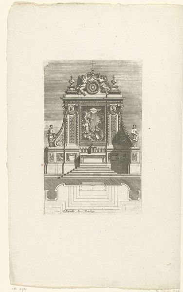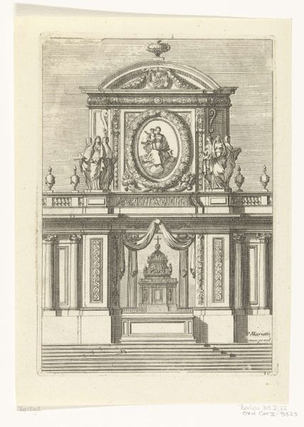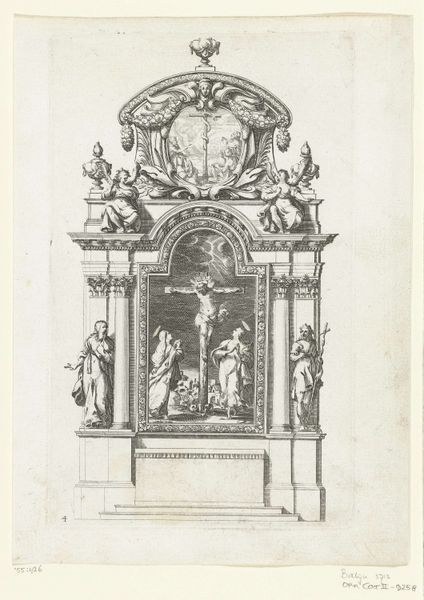 This engraving of a Tabernacle with the Holy Family and child Saint John was created by Jean Lepautre, a French designer and engraver who lived between 1618 and 1682. The image reflects the intertwining of religious and social norms during the Baroque era. Visually, the opulence and grandeur of the tabernacle mirror the Catholic Church’s power and its influence on society. Representations of the Holy Family, such as this, were used to reinforce the period’s gender roles and family structures, with Mary embodying the ideal of motherhood. The child Saint John’s presence suggests themes of innocence and divine purpose. Lepautre presents traditional representations of religious figures but within a frame of architectural fantasy, reflecting the period’s cultural and spiritual values. Through its elaborate design and symbolic content, this engraving serves as a window into the complex interplay between religion, identity, and social expectations of the 17th century.