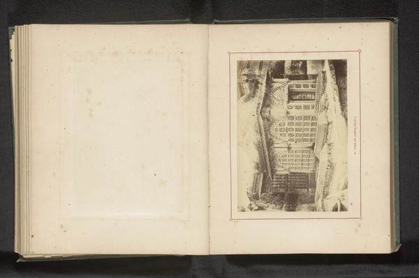 Curator: We're looking at "Zuilengalerij van de Dastur Khan-moskee in Ahmedabad," an albumen print, so photography really, taken before 1866 by Thomas Biggs. It offers a fascinating glimpse into 19th-century Islamic architecture. Editor: It's sepia-toned, incredibly detailed... there’s almost a weight to it, despite it being an image. All those lines of the pillars converging, they make me feel like I'm being pulled in, not just visually, but into another time, another cultural context. Curator: Exactly, and this perspective wasn’t accidental. Photography in this era, especially colonial photography, played a role in shaping perceptions of other cultures. The strategic composition, emphasizing architectural grandeur, often reinforced power dynamics. Editor: So, even in an seemingly objective depiction of architecture, there's an underlying agenda? Is it attempting to "capture" or even, control through representation, the narrative of Islamic spaces and communities? Curator: I would argue, at least partially. Think about the context—British colonial rule in India. Photography becomes a tool for documentation but also for projecting an image, framing a narrative suitable for a European audience, one which tacitly reinforces a sense of Western superiority. Editor: I can see that. But I’m also struck by the human element within this imposing structure. There's someone within the archway, small against the massive pillars and intricate designs. Is that person's inclusion a conscious counter-narrative? Or just a record of a presence in that particular moment? Curator: A complex question. The human figure adds a scale and an element of everyday life but within a carefully constructed frame. The composition isn’t egalitarian. What purpose does including that one small figure serve? It isn't empowering them; on the contrary, that presence reinforces a sense of architectural vastness that inherently makes a human feel inconsequential by comparison. Editor: This makes you consider the silent conversations happening in photographs like this one... what they reveal, but perhaps more critically, what remains hidden, or skewed by the lens and the perspective of the one holding the camera. Curator: Absolutely. It encourages critical examination. Recognizing that photos, prints and other forms of documentation aren’t neutral—they carry social and historical baggage that is just as interesting and illuminating. Editor: I am left contemplating this image not just as a piece of art or historical documentation, but as an object deeply implicated within broader structures of power and representation. Curator: And by recognizing these complex layers, hopefully we are creating a deeper understanding and more equitable dialogue regarding cultures and communities around the world.