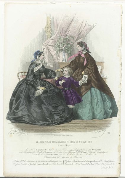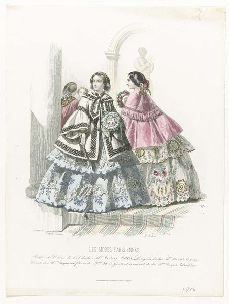 "Les Modes Parisiennes, 1855, No. 655" is a hand-colored engraving by Montaut d'Oleron, which offers us a glimpse into the world of Parisian fashion during the mid-19th century. In a moment when the Industrial Revolution was transforming society, the detailed rendering of these elaborate dresses speaks volumes about the era’s values, reflecting the aspirations and social status of women in the upper classes. Fashion was never just about clothing; it was a visual language through which gender, class, and identity were negotiated and performed. The women in the image, adorned in their finery, embody the ideals of femininity and grace that were so central to the time. Yet, beneath the surface of beauty and elegance, we can sense the restrictions and expectations placed upon women in a patriarchal society. Their bodies are confined by layers of fabric and societal norms, their identities shaped by the roles they were expected to fulfill. This print invites us to consider the complex relationship between fashion, identity, and power, challenging us to question the ways in which societal norms and expectations continue to shape our perceptions of beauty and self-worth.