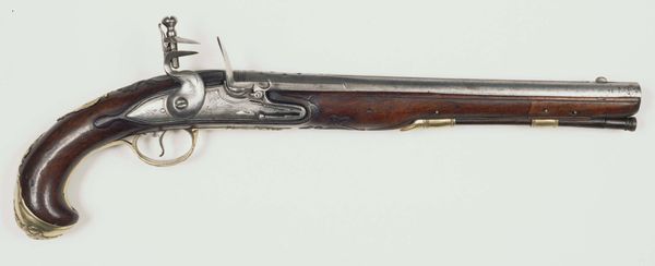 This wheellock pistol was made by Felix Werder, likely in Germany around the mid-17th century, using steel, wood, and bone. Now, this isn't just a weapon; it's a demonstration of incredible skill, blending functional design with ornamental artistry. The steel barrel, crucial for its ballistic purpose, is juxtaposed with an elaborately carved wooden stock, inlaid with bone. Notice the detail in the mechanism—the wheel lock—a complex device requiring precise engineering. It's a far cry from mass production; each element, from the trigger to the butt, shows a deep engagement with the material qualities and performance. We can think of this object as reflecting the social status of its owner, and of the gunsmith who crafted it. It also shows the development and investment of labor, skill, and resources into producing objects that are as aesthetically pleasing as they are lethal. This pistol straddles boundaries, challenging our notions of what constitutes art, craft, and technology.