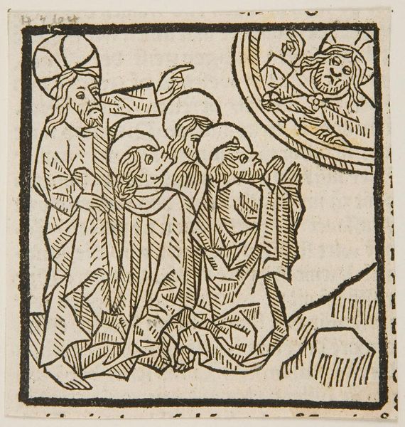 Editor: This is an anonymous woodcut print titled "Raising of Lazarus" held at the Harvard Art Museums. I’m struck by how the artist uses such simple lines to convey so much emotion. What can you tell me about its historical context? Curator: It’s fascinating to consider how these readily reproducible images shaped religious understanding. Prints like this circulated widely, bringing biblical stories into everyday life. How might its accessibility have influenced its interpretation? Editor: I guess it makes it more accessible to the masses. What I mean is that people who can't afford paintings or go to church can still see the Bible. Curator: Precisely! This democratization of imagery shifted the power dynamics, moving religious art beyond the elite. It’s a testament to art's ability to shape collective understanding and belief. Editor: That’s really insightful, considering its influence on a wide audience. Curator: Indeed, analyzing this print allows us to appreciate how accessible art can become a powerful tool for cultural and social influence.