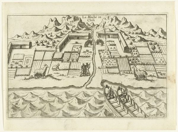Editor: So this is “De harem van de koning van Tuban, 1599,” or "The Harem of the King of Tuban" from the early 1600s, it’s an anonymous engraving on view here at the Rijksmuseum. It's interesting how the printmaking technique allows for such meticulous detail. How would you interpret this from an art history perspective? Curator: As a materialist, I find it fascinating to consider the historical context of this engraving's production. What materials were used, and how did they influence the final product? The very act of creating this print was a process of disseminating information, an act of labor tied to economic and social systems. The line work gives the scene an architectural, almost cartographical quality. How was this print received, reproduced, and consumed by a European audience interested in, and likely exotifying, the East? Editor: I see what you mean, so not only the "what" is depicted but also the "how" becomes a key aspect. This process of engraving seems quite labor-intensive, which shifts how we might view this image of a harem. It almost critiques labor relations. Curator: Precisely! We must ask: Who was the engraver? What were their working conditions? This artwork serves as a record of cultural exchange and appropriation. It also illuminates the labor that went into its production, blurring the lines between high art and craft, raising essential questions about the value we place on artistic creation versus material labor. The stark geometric shapes highlight a European imposition of order onto a foreign subject. Do you agree that there is some kind of orientalist critique implied by that European imposed order? Editor: Definitely. Viewing the print through the lens of materiality and production helps reveal underlying power dynamics. This piece raises fascinating questions. Thanks so much for opening my eyes to that perspective. Curator: It’s my pleasure. Considering art as a product of social and economic conditions truly enhances our understanding. I'll definitely look at more artworks with a new perspective now.