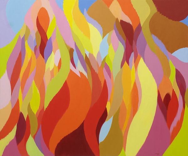 Edward Avedisian created this untitled painting with what looks like washes of acrylic, maybe even dyes, allowing the process to dictate the form. The paint isn't overworked, it's loose and free like the 60's, man! Look at the way the colors bleed and blend. There's a real sense of layering, with the various shades of red, orange, and brown merging into one another. The texture is smooth, almost like stained fabric, with the pigments soaking into the canvas. See that dark brown stroke towards the right? It's almost like a shadow, adding depth and dimension to the piece. The painting is a dance of color and form, of control and chance. Avedisian's work reminds me of Helen Frankenthaler, another painter who wasn't afraid to let the paint do its thing. It's all about embracing the unexpected, and allowing the material to guide the way.
