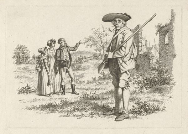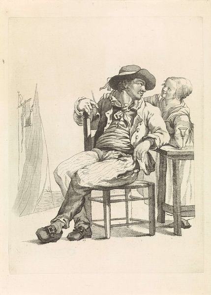 "Boerenfamilie," or "Farmer Family," was made by Jacob Ernst Marcus using pen and brown ink with brush and gray wash. The composition is balanced, with the three figures arranged in a tight triangular form, evoking a sense of familial unity, but there is also a certain rigidity in their poses. Marcus's use of line and shadow is particularly striking. The intricate linework creates a detailed rendering of the figures' clothing and features, contrasting with the soft, subtle washes that define the background. This interplay between line and wash adds depth and texture to the scene. The figures, though depicted with a certain realism, also embody symbolic qualities, reflecting the social and cultural values associated with rural life. The weary child asleep on his father's lap, the watchful mother with her basket, these are not just individuals but archetypes of labor and care. In considering the work's historical context, one might explore how it engages with contemporary ideas about nature, labor, and family. The somewhat idealized portrayal may also reflect broader artistic and philosophical concerns related to nature and society.
