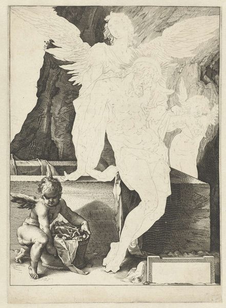 This lithograph, printed by the Kinney Tobacco Company, presents us with an allegory of mortal danger. The woman, caught in a tempestuous cloud, clutches at her breast, her expression a mix of fear and vulnerability. Her gesture, hands crossed protectively, echoes the Venus Pudica, an ancient pose seen in depictions of Aphrodite, symbolizing modesty and an attempt to conceal. Yet, here, it speaks more to a primal instinct of self-preservation. In Botticelli's "Birth of Venus", the goddess covers herself as she emerges from the sea, an acknowledgment of beauty’s power and potential vulnerability. Similarly, our figure is exposed, not by nudity, but by the sheer force of the peril enveloping her. Note how this motif has resurfaced, evolved, and taken on new meanings through time. It engages our deepest, subconscious understanding of vulnerability, protection, and the cyclical nature of peril and rescue.