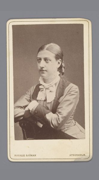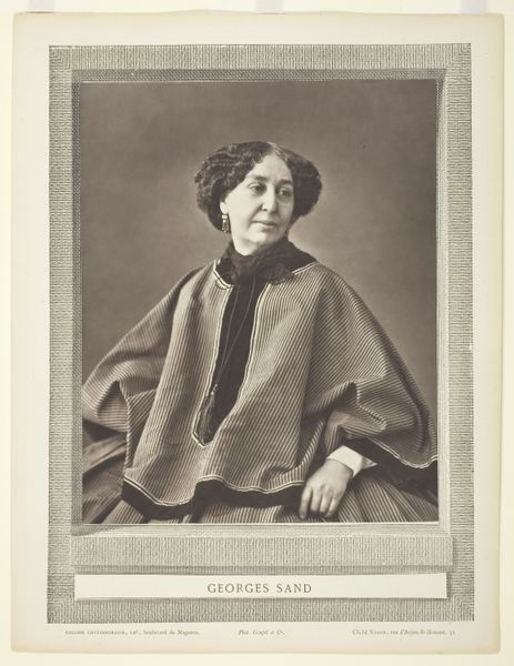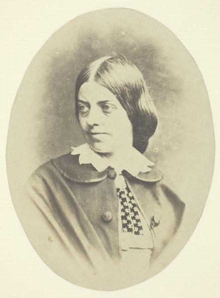 Curator: This is a portrait of Mrs. Craik, made sometime between 1848 and 1860. It is a photograph printed on paper and part of the collection here at The Art Institute of Chicago. Editor: The first thing I notice is the almost ethereal quality of the print; it's quite faded and has a delicate, almost ghostly appearance. It makes you think about the fragility of the medium itself. Curator: Absolutely, and that fragility resonates when we consider the social position of women in England during this period. Craik was a novelist, a profession gaining traction for women, yet still battling many societal expectations and restrictions. Editor: It's intriguing to consider how photography, as a relatively new medium, intersects with those expectations. Photography democratized portraiture, making it accessible beyond the upper classes, yet it still required a certain level of technical expertise. The photographer here is anonymous, a further layer of labor to unpack. Curator: Right. Her gaze, though direct, carries a certain pensiveness. The photograph becomes a powerful tool for self-representation, a negotiation between public persona and private identity at a time when female authors were often scrutinized under patriarchal power structures. How did the simple act of controlling her image speak volumes? Editor: The clothing provides clues: a simple collared coat, partially hiding an ornate blouse. The hand raised near her neck... it all contributes to a crafted image. It begs the question of accessibility of such materials and craftmanship reflected within the composition itself and its correlation with labor standards for this period. Curator: This era saw significant debates surrounding gender, class, and access to education. Figures like Craik, who carved their own paths in literary society, become powerful symbols. This is far from a passive sitter; the photograph can reveal the complex negotiation and aspirations in her persona and generation of authors. Editor: Reflecting upon Mrs. Craik's portrayal emphasizes photography as a labor intensive process—a blend of chemistry, optics and meticulous artistry, ultimately revealing the multifaceted reality that photography possesses beyond simple aesthetic appeal. Curator: Indeed. Viewing this portrait opens an exciting dialogue about the constraints, aspirations, and creative interventions of women in the 19th century. It truly resonates, particularly in this age, as both empowering and a social examination of class.