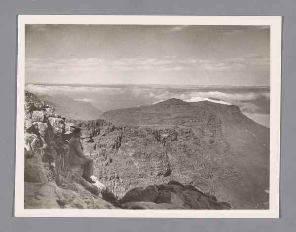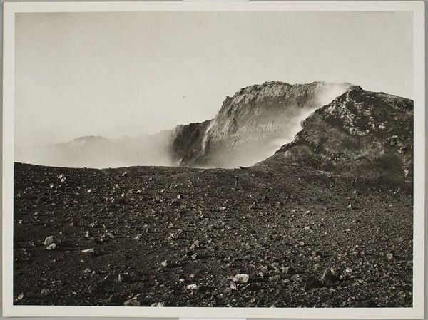 Editor: Vittorio Sella's "Valle del Bove" presents us with a landscape in monochrome. It feels very imposing, almost desolate. What do you see in this photograph? Curator: The image resonates with the weight of time, doesn’t it? Consider the valley itself, the "Valle del Bove"—the Valley of the Ox. Oxen are symbolically linked with strength, endurance, but also sacrifice. Does the starkness of the image evoke any feelings about the land itself? Editor: Now that you mention it, there's a sense of resilience, despite the starkness. Like a place that has endured. Curator: Precisely. The valley floor, scarred by what appears to be volcanic flows, speaks of transformation, destruction, and rebirth. Editor: It’s like a visual metaphor. I see it now. Curator: The image holds a powerful story about the cyclical nature of existence. Editor: I hadn't considered the cultural weight of the imagery before. Thanks!