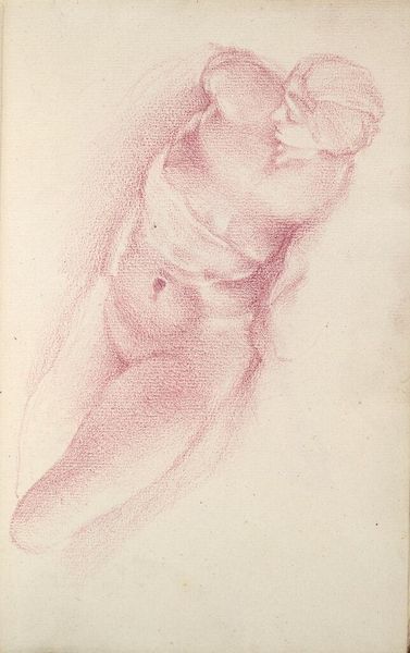 Editor: This is Edward Burne-Jones's "Nude Seen from Behind; verso: Figure Studies," housed at the Harvard Art Museums. The red chalk gives the figure a sense of warmth, but it also feels quite academic and restrained. What can you tell me about the context of this piece? Curator: Burne-Jones, a key figure in the Aesthetic movement, was deeply engaged in a debate about the role of beauty in art. Drawings like this provided foundational studies that supported his idealized visions. How do you think the Victorian art establishment received such works? Editor: I imagine there would have been conflict, being both drawn from life but also idealized. Curator: Precisely. The tension between academic tradition and the evolving notions of beauty and sexuality in Victorian England becomes very apparent here. Such studies became both a tool and a statement. Editor: I see how it challenges our modern view of the period. Curator: Indeed. It underscores that art, even seemingly simple sketches, is always enmeshed in complex social and political dialogues.