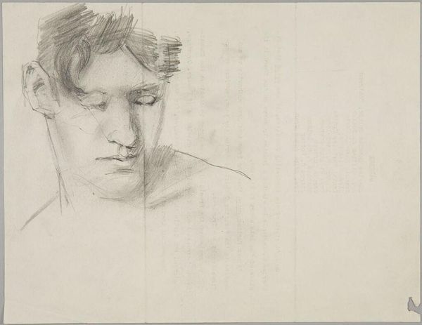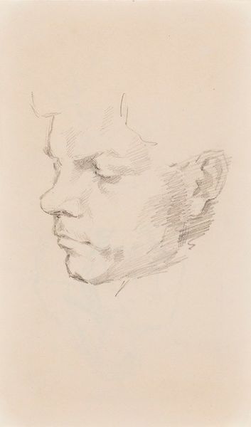 Editor: Here we have Denman Waldo Ross's "Male Head in Profile," a sketch at the Harvard Art Museums. It's really striking, I think. The lines are so delicate, but the overall mood is one of quiet introspection. What do you see in this piece? Curator: I see an artist deeply engaged in the process of seeing. The subtle graphite lines, those geometrical underpinnings almost erased, suggest a quest for the ideal form, a dance between observation and the artist’s inner vision. Do you feel that tension? Editor: Absolutely! And it's like the artist is searching for something beyond just a likeness. I hadn't picked up on the geometrical underpinnings initially, but your description has really opened my eyes. Curator: Exactly! And isn’t that the joy of art, to be invited into another person’s exploration? It's a lesson in seeing itself, wouldn't you agree? Editor: I would! This has been such a thought-provoking experience!