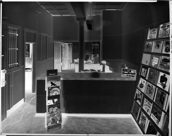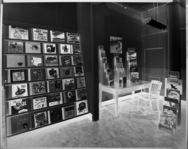 Curator: This is John Deusing's "Untitled (home appliance showroom)" from the Harvard Art Museums collection. It's a silver gelatin print, roughly 8 by 10 inches. Editor: The image is striking, yet strangely sterile. The repetition of forms—refrigerators, cabinets—creates a very rigid, almost unsettling composition. Curator: Indeed. The modularity speaks to mass production and the post-war boom. We see the aspirational lifestyle marketed through gleaming appliances, promising modernity. Editor: The lighting emphasizes the geometric shapes and lines, reducing the objects to their essential forms. There's a strong sense of order, perhaps even control. Curator: Consider the socio-economic implications. Home appliances represented progress, yet access was dictated by class and race. This idealized showroom excludes certain realities. Editor: I see the high contrast and sharp focus as serving to emphasize the artificiality and surface texture of what is on display, revealing the constructed nature of desire. Curator: Absolutely. It is a fascinating study in the visual language of advertising and the societal forces that shape consumer culture. Editor: A powerful, thought-provoking piece that offers a glimpse into the past and prompts reflection on the present.