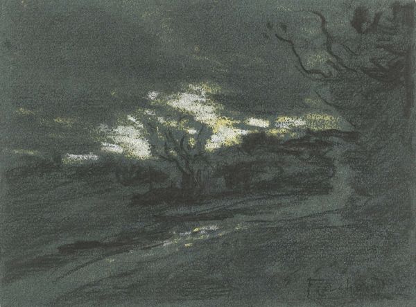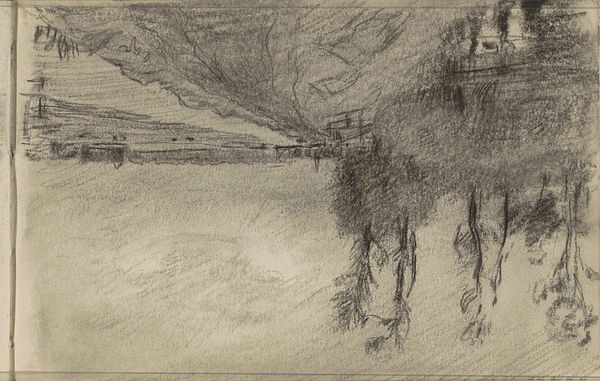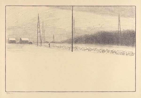 Curator: This arresting image before us is titled "Three Trees in a Snowy Landscape," a gelatin-silver print by Robert Demachy. Editor: It has a distinctly mournful quality, wouldn't you say? The stark contrast between the dark trees and the flat, snowy expanse feels…bleak. The grainy texture amplifies that feeling. Curator: Absolutely. Let’s consider the interplay of tonal values here. The near absence of mid-tones concentrates visual interest in the immediate foreground and the silhouetted treeline, creating a composition that pulls us into the scene even as it limits the visual information provided. The effect creates what many theorists describe as visual hierarchy and, perhaps, demands active construction on the part of the viewer. Editor: That somber tone you mention certainly aligns with Demachy’s time. It invites considerations about the symbolism of winter landscapes—mortality, perhaps, and the dormancy preceding rebirth in the cycle of life. There is, however, his interesting biography, too: as a wealthy investment banker who championed photography as an art form—which offers its own tensions, doesn't it? The privilege to express artistic sentiments through what were then nascent technologies was available to a select few. Curator: You highlight an important contradiction: Demachy, as an apologist of pictorialism, championed manual manipulation in service to photography. But we must appreciate, nonetheless, how, here, his technical choices of gelatin-silver yield something more profound. Note, for example, the shallow depth of field and focus falloff across the planar surface which isolates formal elements, like trees. Consider, further, the almost monochromatic scale, eschewing hue for simple gradients between gray and off-white, which is an elemental semiotic operation of contrast. Editor: That's an excellent reading! Seeing how you analyze its stark components against our knowledge of its broader place and time really sheds more light on the image for me. Curator: Likewise. It highlights the capacity of photographs like "Three Trees in a Snowy Landscape," no matter its history, to trigger our aesthetic understanding through the careful use of monochrome photography. Editor: Ultimately, Robert Demachy offers a reflection on mortality through technical choices. This offers another instance, one of so many, regarding the fraught intersections of privilege, visual culture, and the individual voice.