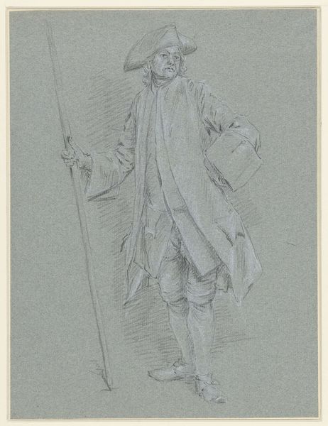 Editor: Here we have Jens Juel's "Study for a Portrait of a Standing Man with a Paper in his Hand," created between 1768 and 1769. The pencil and charcoal on paper give it a very immediate, almost fleeting quality, despite the man's formal attire. What do you make of this study? Curator: It's tempting to see this simply as a preparatory sketch, but it offers a window into the construction of identity in the late 18th century. Think about who was afforded the luxury of representation, and the visual cues that signaled status. The paper he holds - a sign of literacy and engagement with the public sphere - speaks volumes about access to power at that time. Consider also the deliberate contrapposto pose. Why do you think Juel chose to depict the man in this way? Editor: I guess it adds to the sense of elegance and composure, reflecting Neoclassical ideals? But how much agency did Juel's subjects really have in constructing these portrayals? Curator: Exactly. We must consider the power dynamics inherent in portraiture. While sitters like this gentleman had some degree of control through their patronage, the artist inevitably shaped the narrative. Juel's artistic choices also reflect societal expectations around masculinity, authority, and intellect during a time of upheaval and emerging bourgeois values. The "Age of Enlightenment" was only just dawning; these portrait studies tell of the power of those that read, write and are wealthy enough to dictate. Where do we see echoes of this form of portraiture today, and what purpose do they serve? Editor: I hadn't really considered that these weren't straightforward depictions but carefully constructed images with political implications. That definitely makes me see the study in a completely different light. Curator: Indeed! And hopefully it encourages us to question representation and power, in historical works as well as the visual culture we inhabit today.